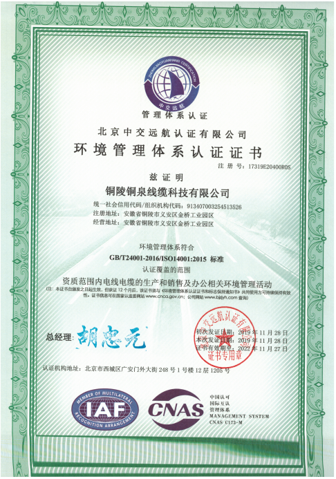 環(huán)境管理體系認(rèn)證證書(shū)