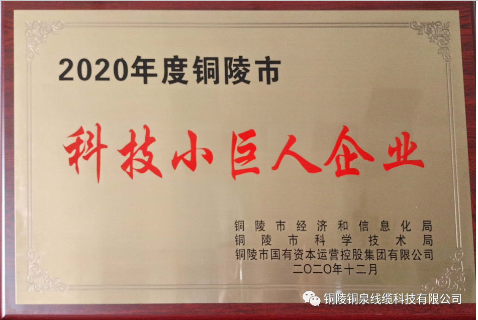近日,銅陵市經(jīng)濟和信息化局公布了2020年度銅陵市“科技小巨人企業(yè)”,銅陵銅泉線纜科技有限公司榜上有名,成功獲評。此次榮譽稱號的獲得,體現(xiàn)了有關(guān)部門對銅泉線纜科技綜合實力的充分肯定和鼓勵,是對我們堅持科技創(chuàng)新并取得良好經(jīng)營業(yè)績的高度認可。