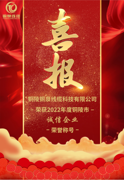 誠信是企業(yè)立足之本,更是企業(yè)發(fā)展之根。為認(rèn)真貫徹落實(shí)市委市政府關(guān)于打造“信用銅陵”的部署要求,市信用辦發(fā)布《關(guān)于開展銅陵市“誠信企業(yè)”評選活動(dòng)的通知》,正式啟動(dòng)了2022年度“銅陵市誠信企業(yè)”評選活動(dòng)。本次活動(dòng)按照從嚴(yán)從實(shí)、重質(zhì)重效的原則,經(jīng)企業(yè)申報(bào)、資格審核、行業(yè)推薦、數(shù)據(jù)核實(shí)、信用審查、綜合評估、社會(huì)公示等程序評選出信用制度健全、經(jīng)營管理規(guī)范、社會(huì)責(zé)任落實(shí)、公眾評價(jià)優(yōu)良,在全市具有示范作用的企業(yè),銅陵銅泉線纜科技有限公司成功上榜,再度蟬聯(lián)銅陵市“誠信企業(yè)”榮譽(yù)稱號(hào)。