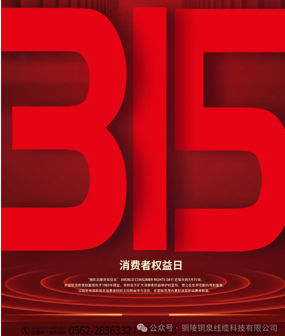 一年一度的315國(guó)際消費(fèi)者權(quán)益日如期而至,今年,中國(guó)消費(fèi)者協(xié)會(huì)將315主題定為“激發(fā)消費(fèi)活力”,旨在優(yōu)化消費(fèi)環(huán)境,推動(dòng)消費(fèi)從疫后恢復(fù)轉(zhuǎn)向持續(xù)擴(kuò)大。眼下,刺激消費(fèi)、激發(fā)活力,是經(jīng)濟(jì)發(fā)展的關(guān)鍵一步,在此背景下,切實(shí)保證消費(fèi)者合法權(quán)益變得愈發(fā)重要。銅泉線纜始終堅(jiān)守品質(zhì),始終秉承“以誠(chéng)拓市場(chǎng),用心鑄品牌”的經(jīng)營(yíng)理念,以匠心,贏誠(chéng)信;以責(zé)任,筑未來。315維權(quán)日我們不僅僅是參與者,更是責(zé)任的踐行者。在這個(gè)特別的日子里我們的承諾不會(huì)缺席。